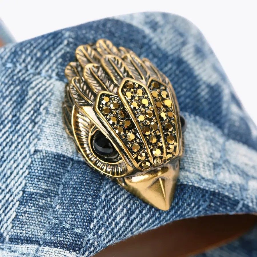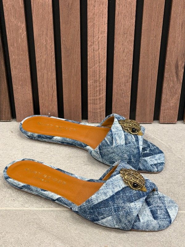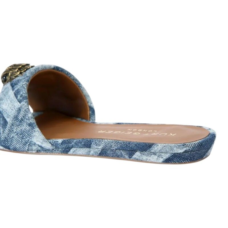 De Kurt Geiger blauwe Kensington Flat Sandal is dé slip-on voor een zomerse look. Deze dames slippers zijn uitgevoerd in blauw denim en hebben een unieke band die je voeten comfortabel omhult. Het opvallende eagle logo van Kurt Geiger geeft een trendy twist aan deze slippers. Ideaal voor een dagje uit of een casual wandeling. Upgrade je zomeraccessoire collectie met deze blauwe Kurt Geiger Kensington Flat Sandal. Perfect voor ontspannen dagen in stijl!