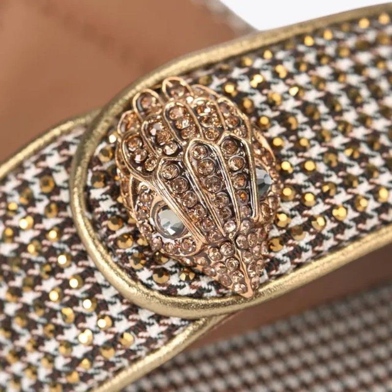 De Kurt Geiger Kensington Langley beige hakken zijn de eyecatchers die je zoekt. Deze dames sandalen met hak hebben een hakhoogte van 7 centimeter en zijn versierd met schitterende strass steentjes. Het subtiele eagle logo van Kurt Geiger voegt een stylish detail toe. Deze beige Kurt Geiger sandalen met hak zijn een must-have voor elke stijlvolle gelegenheid. Laat je stralen met deze trendy schoenen!