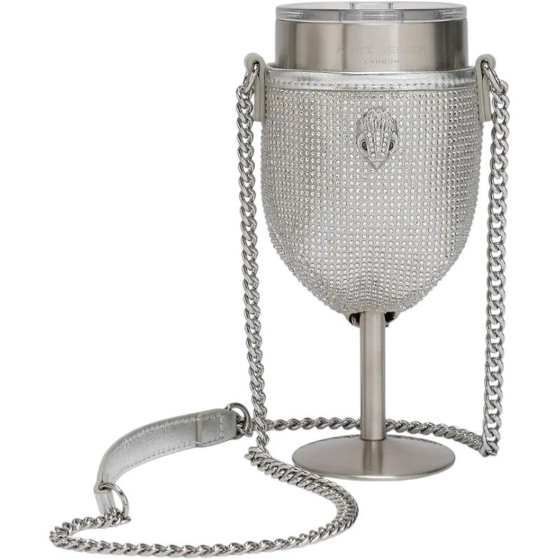 De Kurt Geiger Kensington Wine Glass XB in zilver is jouw nieuwe statement crossbody tas. Deze zilveren damestas is voorzien van het iconische eagle logo en komt met een lange band, waardoor je hem comfortabel crossbody kunt dragen. De tas voegt een vleugje glam toe aan elke outfit. Perfect voor een avondje uit of een trendy daglook. Mis deze zilveren Kurt Geiger tas niet en maak je garderobe compleet met deze must-have.