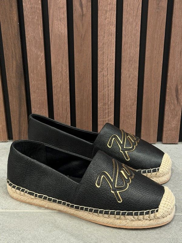 De Kurt Geiger Kurt Espadrille in zwart zijn trendy dames instappers die niet mogen ontbreken in je garderobe. Deze zwarte instappers bieden een comfortabele pasvorm gecombineerd met een eenvoudig design, ideaal voor casual dagen. Perfect te combineren met zowel je favoriete jeans als zomerjurken. De instappers zijn volledig in stijl met de modetrends van nu. Samengevat: stap moeiteloos de deur uit met de zwarte Kurt Geiger Kurt espadrille instappers.