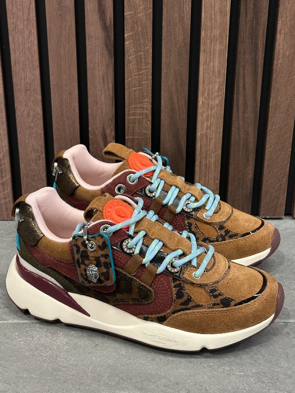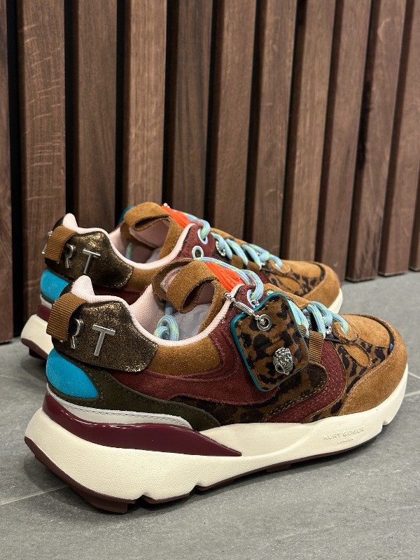 Geef je outfit een boost met de trendy Kurt Geiger Kurt Runner sneakers! Deze dames sneakers hebben een suède look en komen in een stijlvolle bruine tint met een wilde leopard print. Het iconische Eagle logo maakt het geheel helemaal af. Of je nu een casual look afmaakt of nét dat beetje extra flair toevoegt, deze sneakers zijn je perfecte metgezel. Combineer ze met een bijpassende tas uit de Kurt Geiger collectie voor de ultieme match. Shop nu en stap in stijl de straat op met deze must-have stappers!