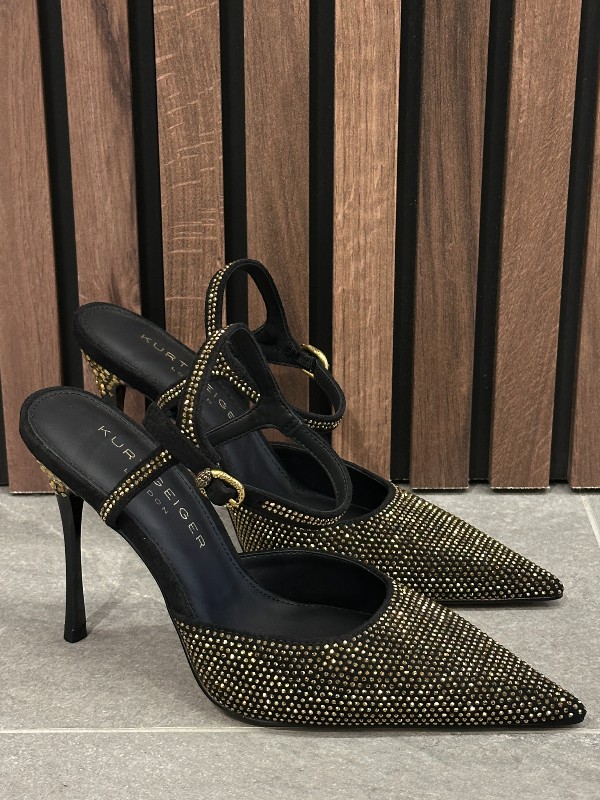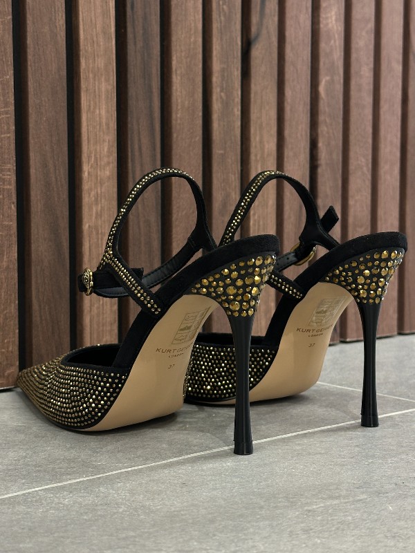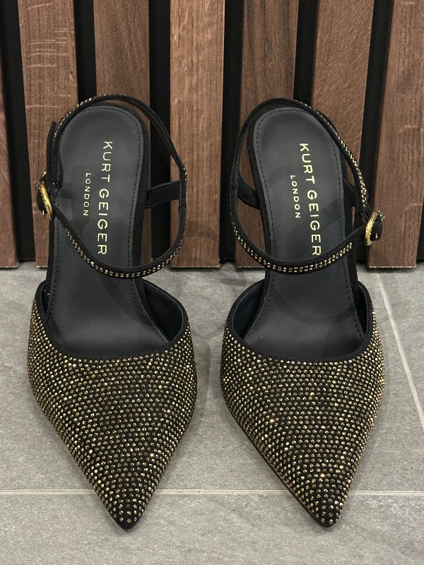 Voeg een vleugje glamour toe aan je outfit met de Kurt Geiger Mayfair Point Ankle Strap sandalen. Deze zwarte damessandalen met een stijlvolle hak van 9 centimeter zijn ideaal voor een avondje uit. De ankle strap zorgt voor een perfecte pasvorm, en de betoverende strass steentjes geven een sprankelende touch aan elke stap. Combineer deze Kurt Geiger hakken met een bijpassend zwart tasje voor een trendy look. Laat je verleiden door de oogverblindende charme van deze zwarte hakken en geef je schoenencollectie een snelle upgrade. Trek ze aan en steel de show!