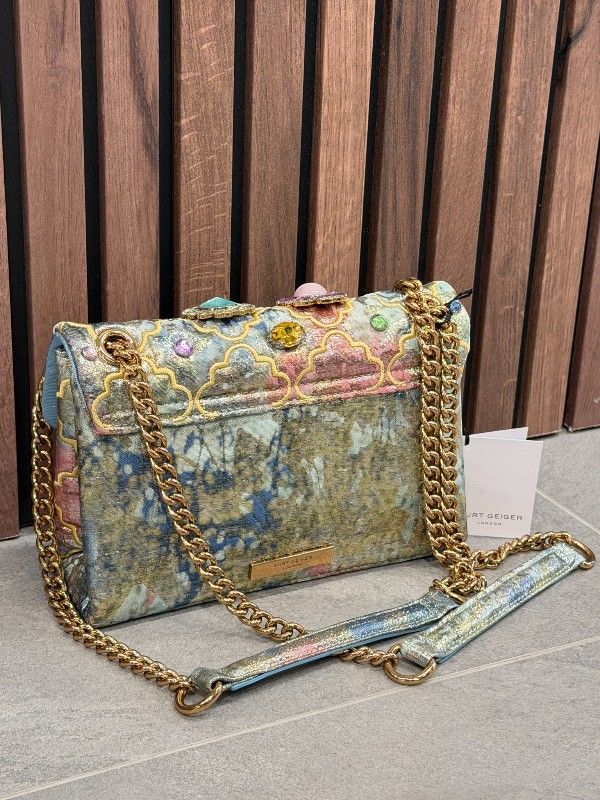 De Kurt Geiger Md Kensington Bag is een stijlvolle meerkleurige damestas die perfect bij jouw trendy look past. Deze crossbody tas beschikt over een lange band, waardoor je hem comfortabel over je schouder kunt dragen. De magnetische knoopsluiting zorgt ervoor dat je spullen veilig zijn opgeborgen. Opvallend is het iconische Eagle logo dat de tas een unieke touch geeft. Deze meerkleurige Kurt Geiger tas is een must-have voor elke modebewuste vrouw. Voeg een vleugje kleur toe aan jouw outfit met deze fantastische Kurt Geiger bag.