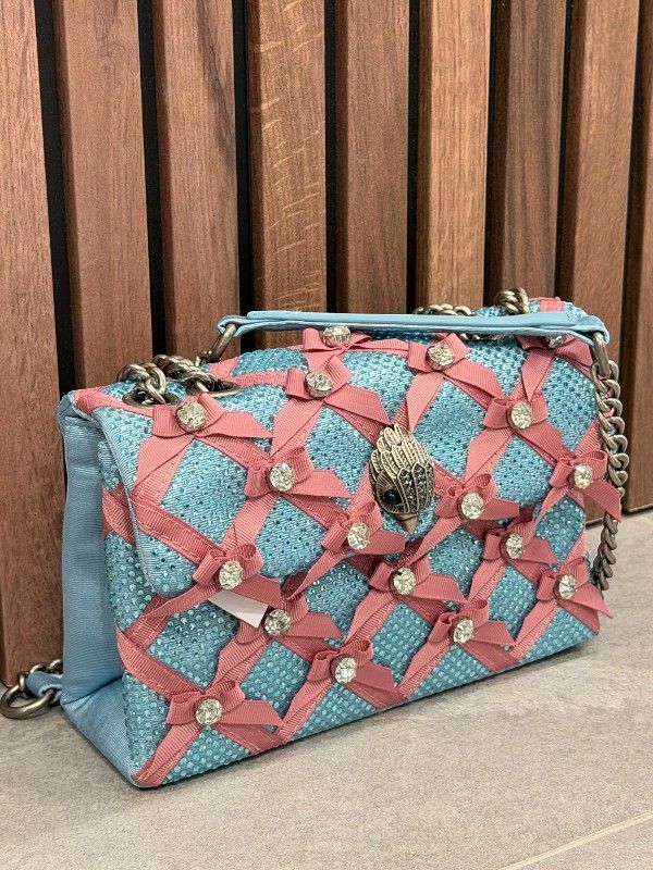 De Kurt Geiger Md Kensington Bows blauwe damestas is een stijlvol accessoire voor elke outfit. Deze prachtige blauwe crossbody tas heeft een verstelbare band en een handige magnetische knoopsluiting. Het iconische Eagle logo op de tas zorgt voor een trendy touch. Draag deze blauwe Kurt Geiger tas comfortabel crossbody en geniet van een modieuze look. Voeg een verfijnd detail toe aan je dagelijkse outfit met deze prachtige Kurt Geiger damestas. Perfect voor modebewuste trendsetters!