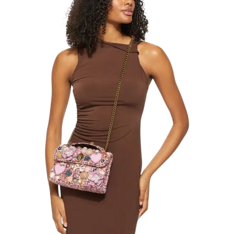 De Kurt Geiger Md Kensington Tuttifrutti in roze is je nieuwe favoriete damestas. Deze crossbody tas is gemaakt van tweed stof en heeft een verstelbare band voor optimaal draagcomfort. De magnetische knoopsluiting zorgt voor gemakkelijke toegang tot je essentials. Het opvallende Eagle logo voegt een speelse twist toe aan dit roze Kurt Geiger item. Draag deze trendy Kurt Geiger crossbody tas elke dag, of laat hem de ster van je avondlook zijn. Steeds opnieuw een stylestatement!