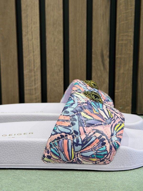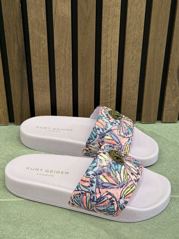 De Kurt Geiger paarse Meena Eagle slippers zijn jouw must-have voor de zomer. Deze dames slippers hebben een opvallende paarse kleur die elke strandoutfit laat stralen. Ze zijn ontworpen met een stevige band en hebben het iconische Eagle-logo van Kurt Geiger als eyecatcher. De Meena Eagle slippers zijn niet alleen stijlvol, maar ook comfortabel voor dagelijks gebruik. Ideaal voor een ontspannen dagje uit of een casual wandeling op de boulevard. Match deze Kurt Geiger Meena Eagle slippers nu met de bijbehorende tassen!