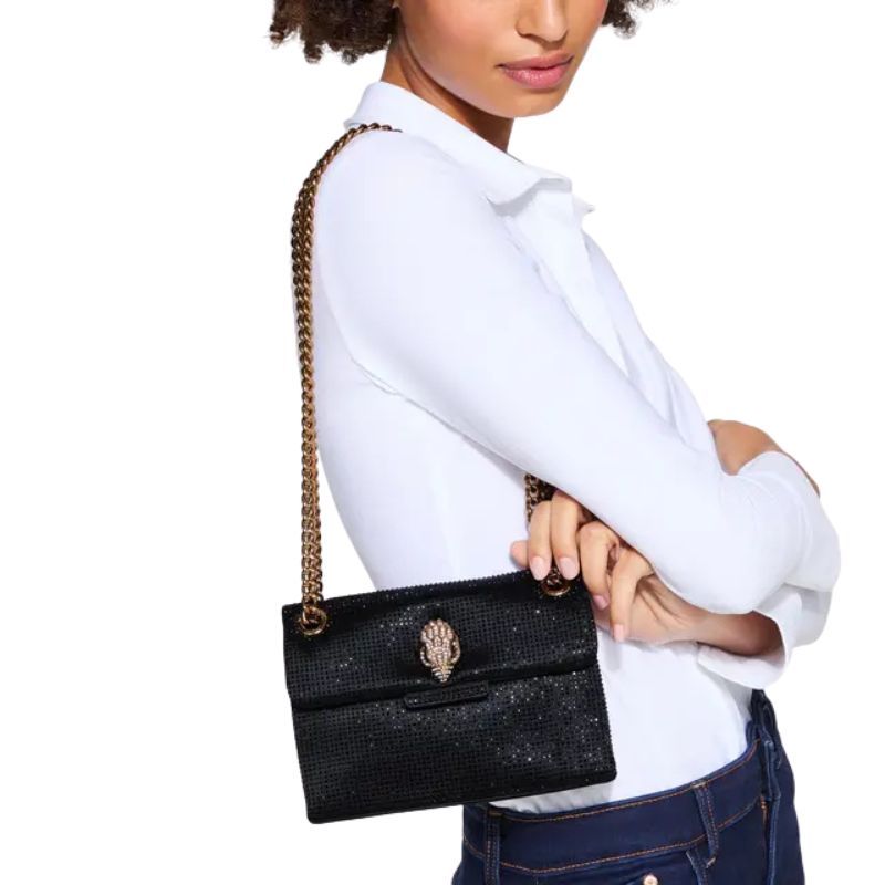 De Kurt Geiger Mini Kensington in zwart is een must-have damestas. Deze zwarte tas is voorzien van het opvallende Eagle logo en heeft een verstelbare band waardoor je hem crossbody en over je schouder kunt dragen. Met de handige magnetische knoopsluiting houd je je essentials veilig en binnen handbereik. Draag deze trendy Kurt Geiger tas voor een stijlvolle uitstraling waar je ook gaat. Deze zwarte Kurt Geiger tas combineert moeiteloos met elke outfit. Voeg deze aan je collectie toe en maak een statement!