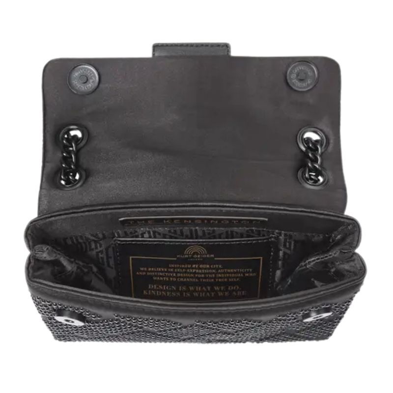 Maak kennis met de Kurt Geiger Mini Kensington in zwart, dé crossbody damestas die je outfit een stijlvolle upgrade geeft. Deze zwarte tas komt met een verstelbare band en een handige magnetische knoopsluiting. Gedecoreerd met het kenmerkende eagle logo van Kurt Geiger is dit een echte eyecatcher. Of je hem nu crossbody draagt of als schoudertas, deze zwarte Kurt Geiger tas past perfect bij elke gelegenheid. Voeg een vleugje stijl toe aan je dagelijks leven.