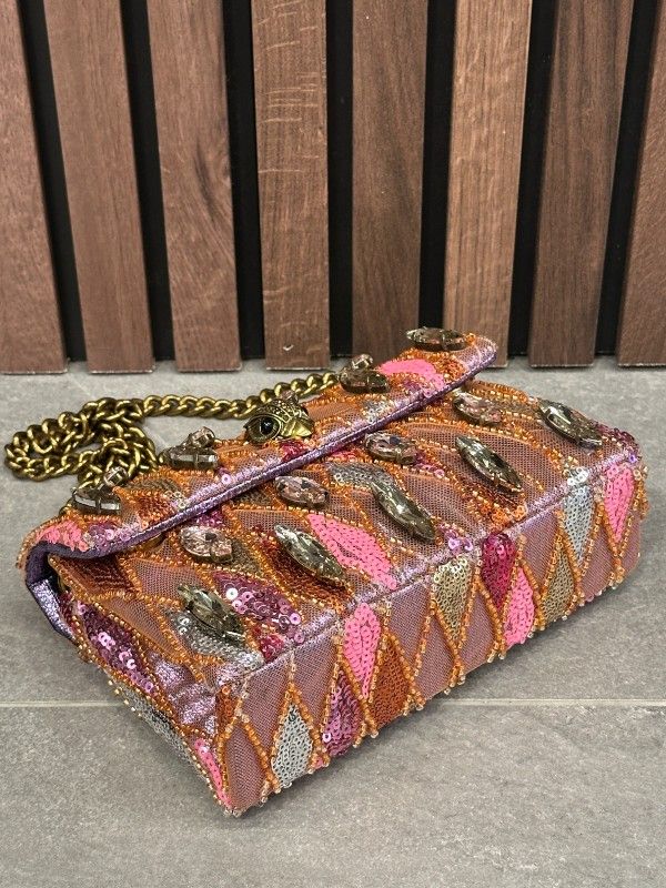 Voeg een vleugje glamour toe aan je outfit met de Sequin Mini Kensington damestas van Kurt Geiger. Deze meerkleurige crossbody tas is een pareltje dat je look meteen opfleurt. Met zijn betoverende kleuren en sprankelende pailletten is de tas een echte eyecatcher. De lange band maakt het dragen over de schouder comfortabel en handig. Dankzij de magnetische knoopsluiting heb je snel toegang tot al je essentials. Of je nu gaat voor een casual dagje uit of een avondje stappen, deze Kurt Geiger tas is de perfecte metgezel. Wees klaar om te stralen! De geweven steentjes van deze tas lopen door over de onderkant van de tas. Heel mooi maar wel kwetsbaar. Voorzichtig mee omgaan, we kunnen hier geen garantie opgeven.