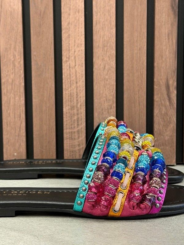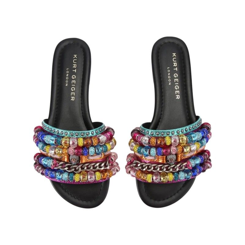 Maak kennis met de Kurt Geiger Southbank Beaded Flat slippers voor dames in een levendig meerkleurig design. Deze slippers met brede band zijn perfect voor een casual zomerse stijl en bieden een comfortabele pasvorm. De kleurrijke kraal-details geven een speelse twist aan je outfit. Eenvoudig aan en uit te trekken, waardoor ze ideaal zijn voor dagelijks gebruik. Voeg wat kleur aan je collectie toe met deze Kurt Geiger Southbank slippers en maak elke dag wat vrolijker.