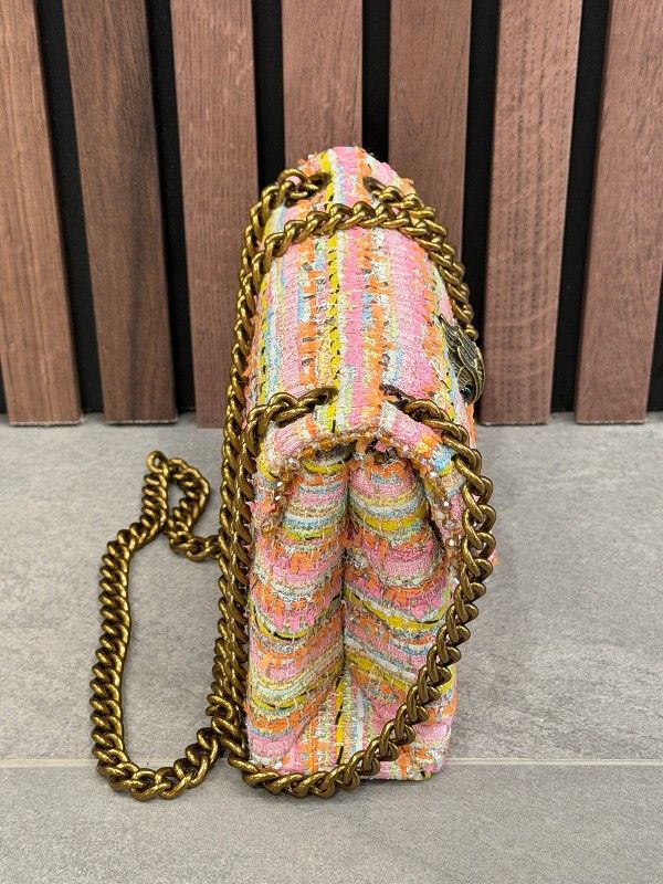 De Kurt Geiger Tweed Mini Kensington in roze is de crossbody damestas die je niet wilt missen. Deze roze tas is gemaakt van trendy tweed stof en heeft een verstelbare band voor ultiem gebruiksgemak. De magnetische knoopsluiting zorgt dat je spullen veilig zijn, terwijl het kenmerkende Eagle logo van Kurt Geiger een stijlvol statement maakt. Of je hem nu als crossbody of schoudertas draagt, deze tas biedt veelzijdigheid en flair. Kies voor deze Kurt Geiger roze crossbody tas om je outfit een opvallende touch te geven. Perfect om je look een boost te geven!