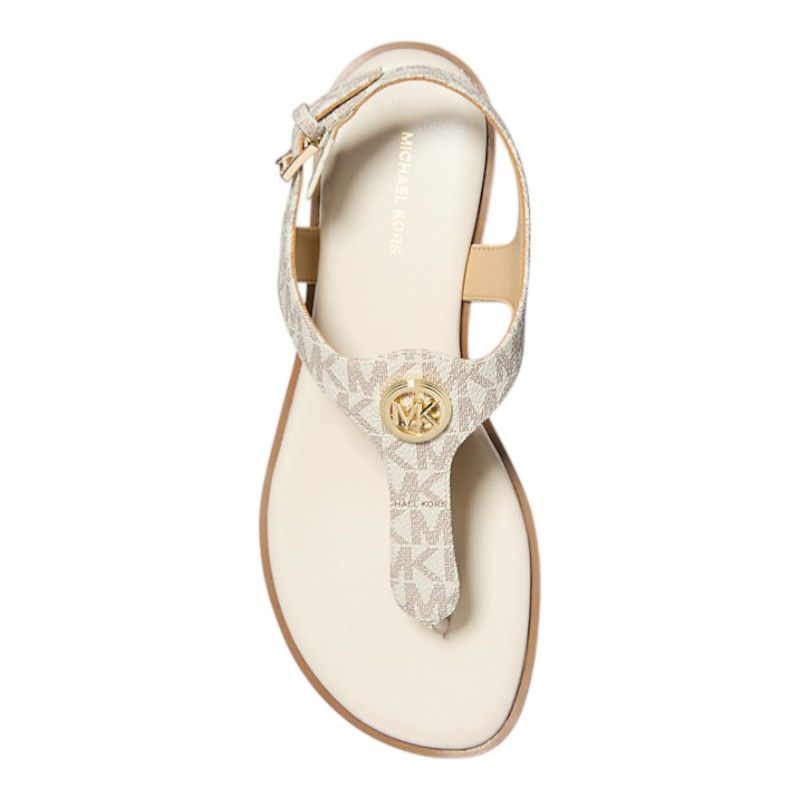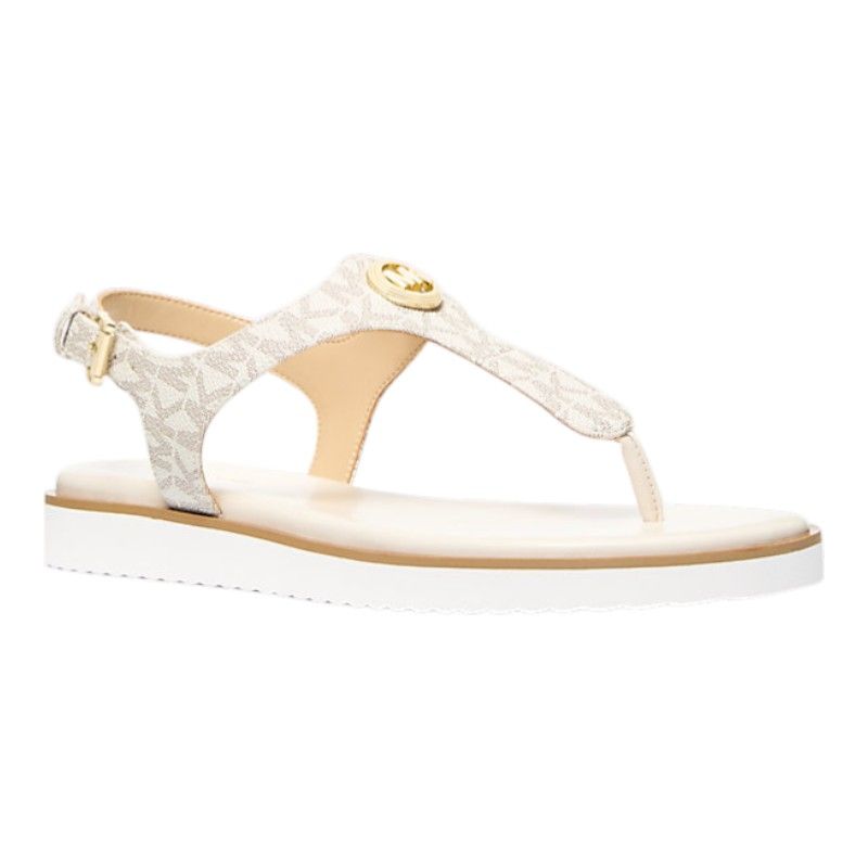 De Michael Kors Val Thong Sandal in beige is de ultieme fashion must-have voor deze zomer. Deze platte dames sandalen zijn voorzien van een stijlvolle logoprint en verstelbare bandjes voor een persoonlijke pasvorm. De neutrale beige kleur maakt deze Michael Kors sandalen makkelijk te combineren met elke outfit. Of je nu een zonnige dag aan het strand doorbrengt of een dagje door de stad slentert, deze Michael Kors sandalen zorgen altijd voor een trendy touch aan je look. Grab deze beige Michael Kors sandalen en stap stijlvol de zomer in!