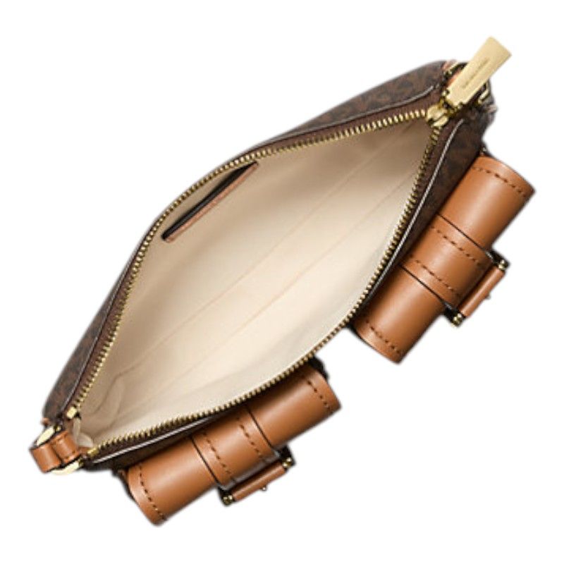 Deze bruine damestas van Michael Kors is een echte must-have. Met een all-over Michael Kors logoprint straalt de tas luxe uit. Aan de voorzijde zitten twee handige vakjes voor kleinere items en het hoofdvak sluit met een ritssluiting. Perfect te combineren met de bijpassende bruine Michael Kors sneakers voor een stijlvolle set!