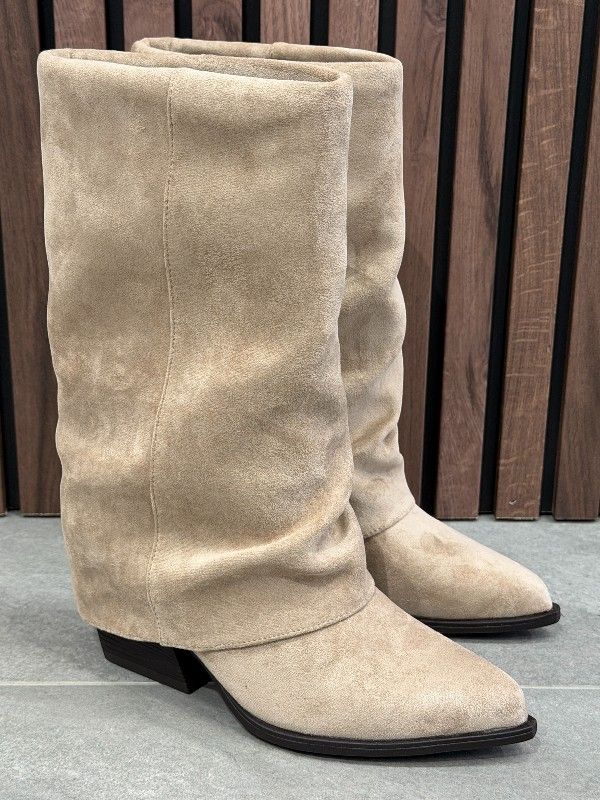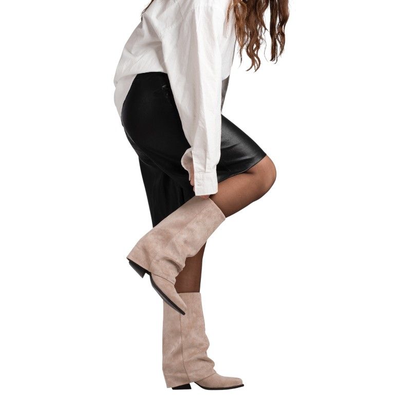 De Poelman lange laarzen in beige zijn een mode must-have. Deze dames laarzen hebben een stijlvolle suède look en een comfortabele hak van 5 centimeter. Ideaal voor een trendbewuste outfit met een eigentijdse twist. Draag deze Poelman laarzen bij elke gelegenheid en laat je stijl de show stelen. De beige kleur maakt ze veelzijdig en perfect te combineren met diverse outfits. Maak van deze Poelman laarzen jouw nieuwe favoriet voor een trendy, dagelijkse look.