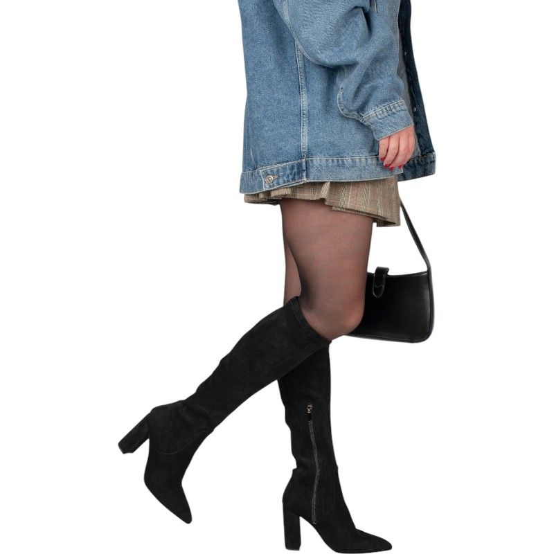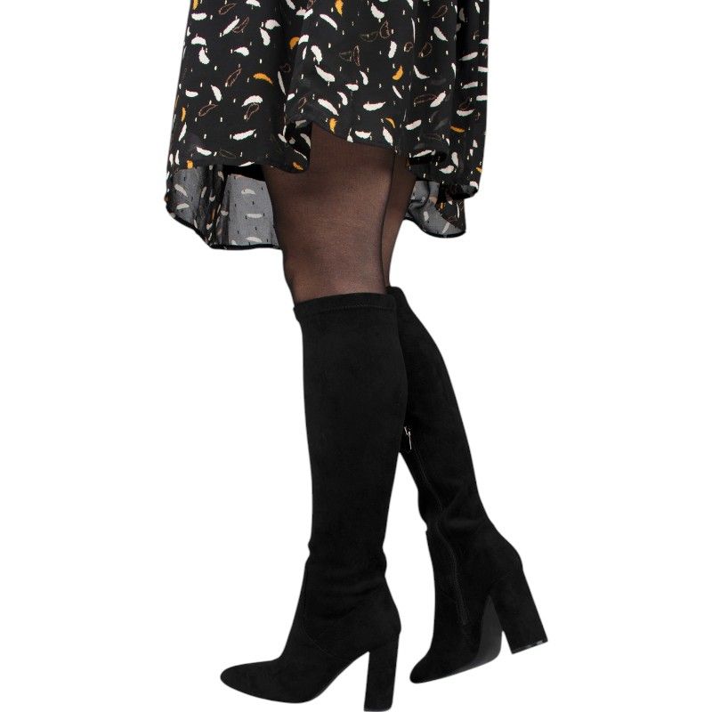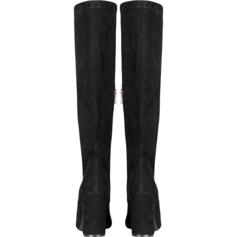Deze mooie zwarte laarzen van Poelman hebben stevige hakken van ruim negen centimeter hoog en zijn gemaakt van materiaal met stretch. Aan de binnenzijde van de laarzen zit een rits, de rits stopt halverwege.