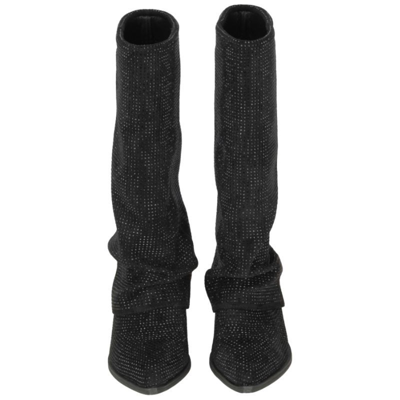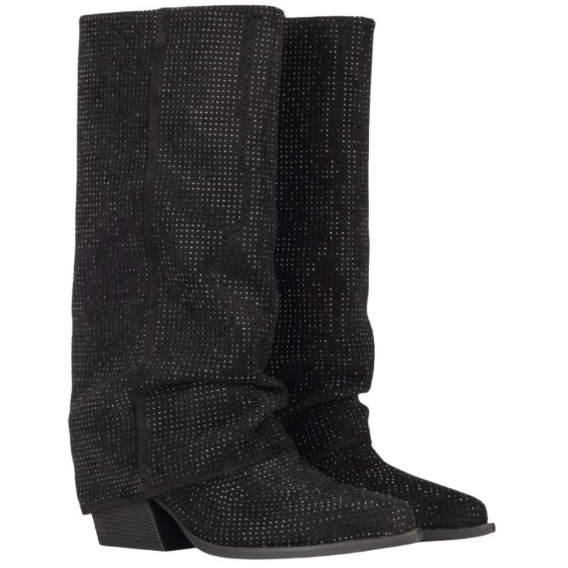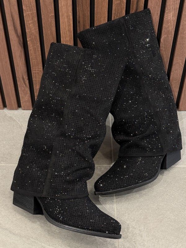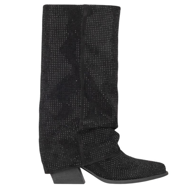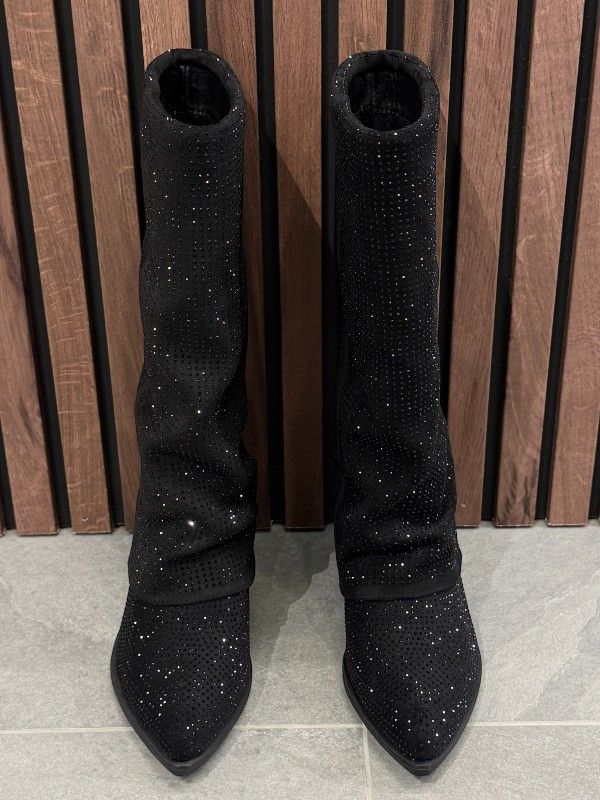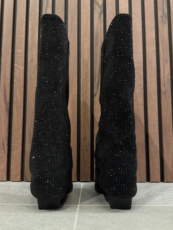 De Poelman zwarte lange laarzen met hak geven je outfit een trendy twist. Deze dames laars in het zwart is perfect voor elke gelegenheid. De hakhoogte van 5 centimeter zorgt voor net dat beetje extra lengte zonder in te leveren op comfort. De laarzen hebben strass steentjes die het Poelman logo accentueren en zorgen voor een glamoureus detail. Of je nu naar een feestje gaat of een dagje in de stad doorbrengt, deze dames laarzen van Poelman maken je look compleet. Shop nu en geef je outfit de boost die ze verdient! De laarzen vallen wat groter.