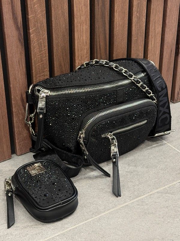 De Steve Madden Bmax-12 in zwart is de perfecte damestas crossbody voor een trendy look. Deze zwarte schoudertas is ontworpen met de kenmerkende Steve Madden print en is afgewerkt met strass steentjes voor een opvallende touch. De verstelbare band zorgt voor veelzijdigheid in draagstijl, terwijl de ritssluiting je spullen veilig houdt. Een extra etui biedt ruimte voor al je essentials. Draag de zwarte Steve Madden tas crossbody of over je schouder voor een fashionable statement. Mis deze eyecatcher niet en voeg hem vandaag nog toe aan je collectie!