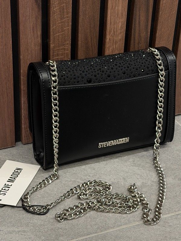 De Steve Madden Braya-12 in zwart is jouw nieuwe favoriete damestas. Deze stijlvolle crossbody tas van Steve Madden valt op door zijn lange band en de iconische Steve Madden print. Het strass steentjes logo voegt een sprankelende touch toe, perfect voor elke gelegenheid. Draag hem als schoudertas om je essentials op een trendy manier bij je te hebben. De zwarte Steve Madden Braya-12 avondtas is een must-have voor een fashionable look!