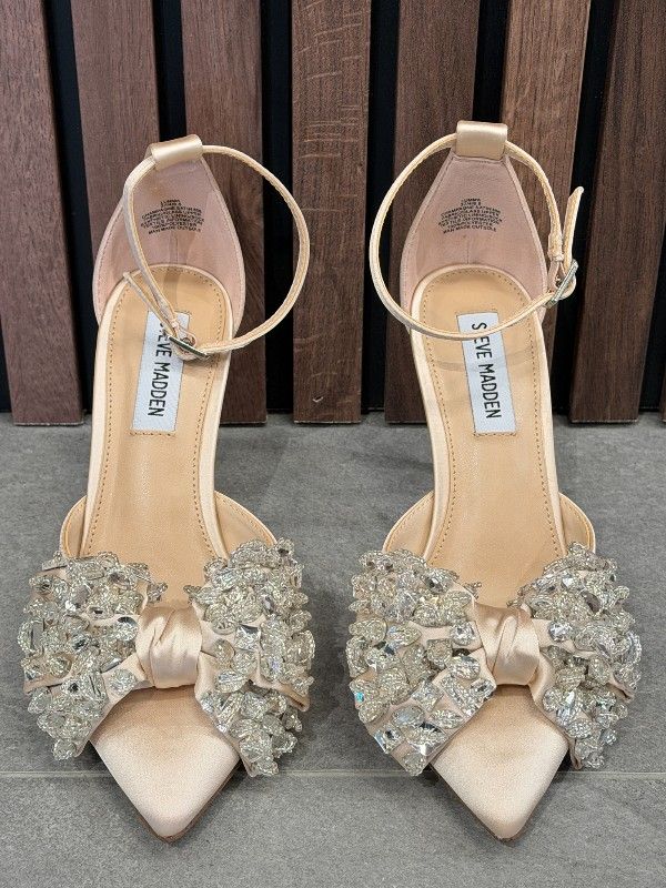 De Steve Madden Lumma beige sandalen met hak zijn een echte blikvanger. Deze dames hakken zijn gemaakt van satijn materiaal en zijn versierd met strass steentjes voor een sprankelende touch. De hakhoogte van 9 centimeter geeft je net dat beetje extra lengte en flair. Perfect voor een avondje uit of een speciale gelegenheid. Voeg de Steve Madden Lumma heels in beige toe aan je collectie en maak een statement.