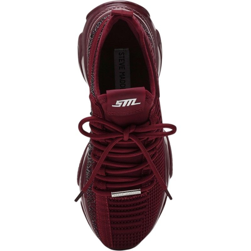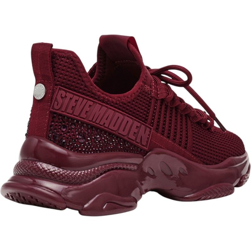 Deze Maxilla R E sneaker van Steve Madden in de kleur cherry red is een echte eyecatcher. De schoen is versierd met glinsterende strass steentjes op de zijkant en afgewerkt met het Steve Madden logo op de tong, zijkant en tussen de veters. Voor extra comfort en de beste pasvorm adviseren wij om een maat groter te nemen.