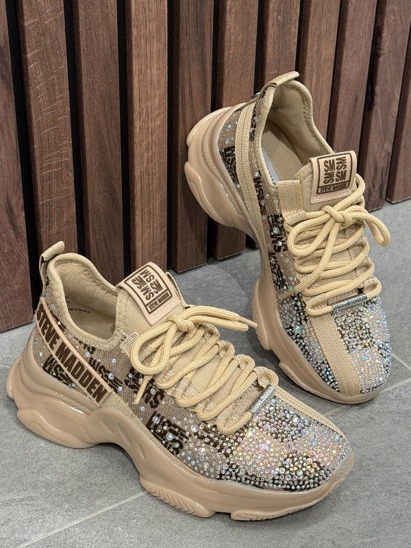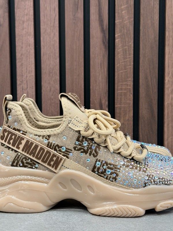 Ontdek de Steve Madden Maxima-SMRE sneakers in beige, perfect voor fashion-forward vrouwen. Deze beige sneakers zijn gedecoreerd met opvallende strass steentjes die de logo print extra flair geven. De modieuze uitstraling past bij verschillende outfits en zorgt ervoor dat je er altijd trendy uitziet. Draag deze Steve Madden sneakers om je look een coole touch te geven. Ben je klaar om de show te stelen met je nieuwe beige sneakers?