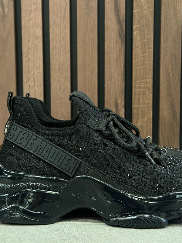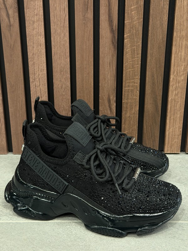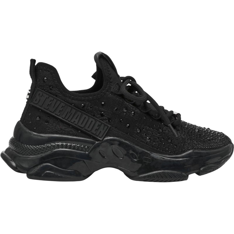 De Steve Madden Maxima-SMRE sneakers in zwart zijn een must-have voor je sneakercollectie. Deze dames sneakers hebben een stijlvolle logo print en zijn afgewerkt met opvallende strass steentjes. Perfect voor dagelijks gebruik, deze zwarte Steve Madden sneakers combineren eenvoudige elegantie met een trendy touch. Voeg een vleugje glans toe aan je outfit met deze toffe sneakers.