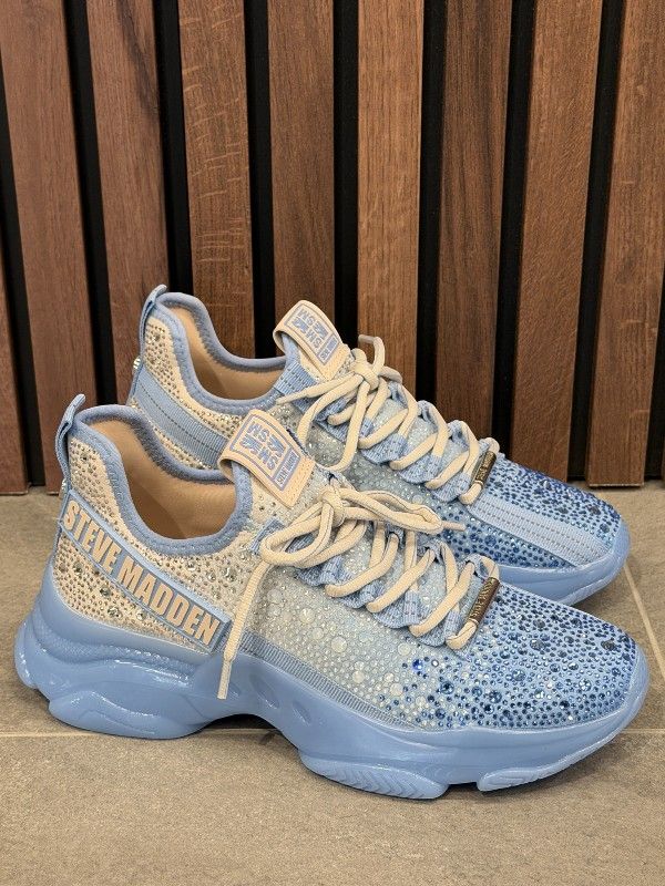De Steve Madden Mistica in blauw zijn de dames sneakers die je garderobe die extra sparkle geven. Deze trendy blauwe sneakers zijn versierd met strass steentjes voor een opvallende look. Ze hebben unieke contrastzolen die de algehele stijl versterken. Perfect voor een casual dagje uit of een relaxte middag met vrienden. Draag de Steve Madden Mistica sneakers overal waar je een vleugje glamour aan je outfit wilt toevoegen. Met deze opvallende blauwe sneakers van Steve Madden zie je er altijd modieus uit. Voeg ze vandaag nog toe aan je collectie! Bij twijfel tussen twee maten kan je het beste de grotere maat nemen.