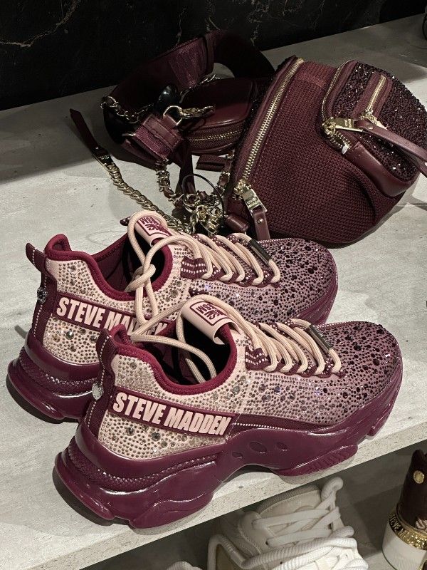 Hoe mooi zijn onze Steve Madden Mistica sneakers?! De damesschoenen zijn all-over bewerkt met rode en zilveren strass stenen in verschillende maten. De sneakers hebben een grove glimmende zool en een instapsok. Aan de zijkant van de schoenen staat een groot grijs Steve Madden Logo.