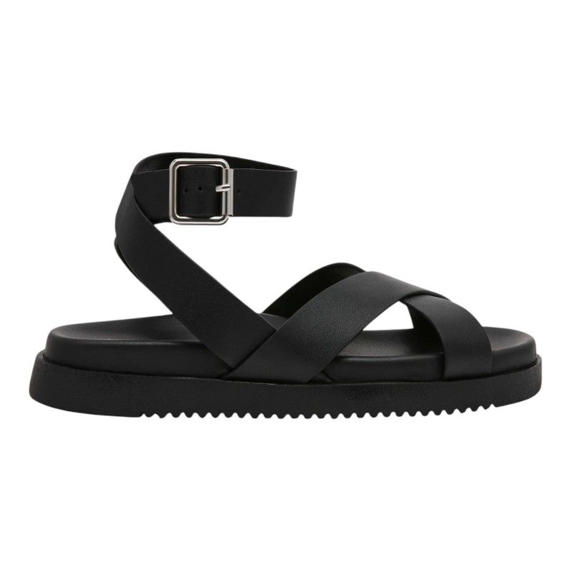 De Steve Madden My Bestie zwarte sandalen zijn jouw nieuwe favoriet voor elke zomerse dag. Deze platte sandalen voor dames zijn uitgevoerd in stijlvol zwart leer en zijn uitgerust met handige verstelbare bandjes voor een perfecte pasvorm. Door het minimalistische ontwerp kun je deze zwarte sandalen van Steve Madden makkelijk combineren met elke outfit. Maak je zomergarderobe compleet met deze must-have sandalen van Steve Madden in zwart. Voeg ze vandaag nog toe aan je collectie en laat je stijl stralen!