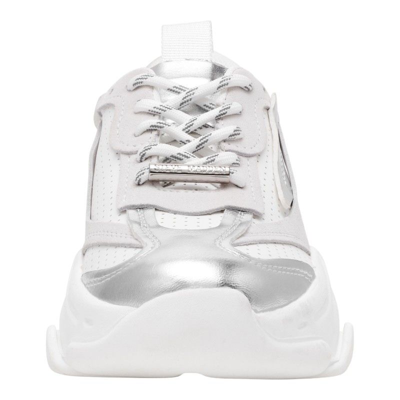 De Steve Madden Posses-Perf sneakers in wit zijn jouw nieuwe favorieten! Deze dames sneakers met grove zolen bieden een moderne en trendy uitstraling. De neutrale witte kleur maakt ze perfect te combineren met elke outfit. Dankzij het iconische ontwerp van Steve Madden zijn ze stijlvol en comfortabel. Ontdek de veelzijdigheid van deze witte Steve Madden sneakers en voeg een frisse touch toe aan je schoenencollectie. Perfect voor dagelijks gebruik en een must-have voor je garderobe!