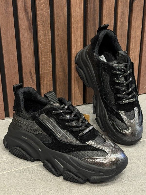 De Steve Madden Posses-Perf sneakers in zwart zijn de sneakers die je garderobe nodig heeft. Deze zwarte dames sneakers hebben grove zolen die je niet alleen extra lengte geven, maar ook zorgen voor een trendy look. De sportieve uitstraling en het tijdloze zwart passen perfect bij elke outfit, of je nu gaat voor casual of iets opvallender. Combineer deze Steve Madden sneakers met je favoriete outfit en steel de show. Mis deze zwart-witte Steve Madden sneakers niet; ze zijn een must-have voor elke fashionista!