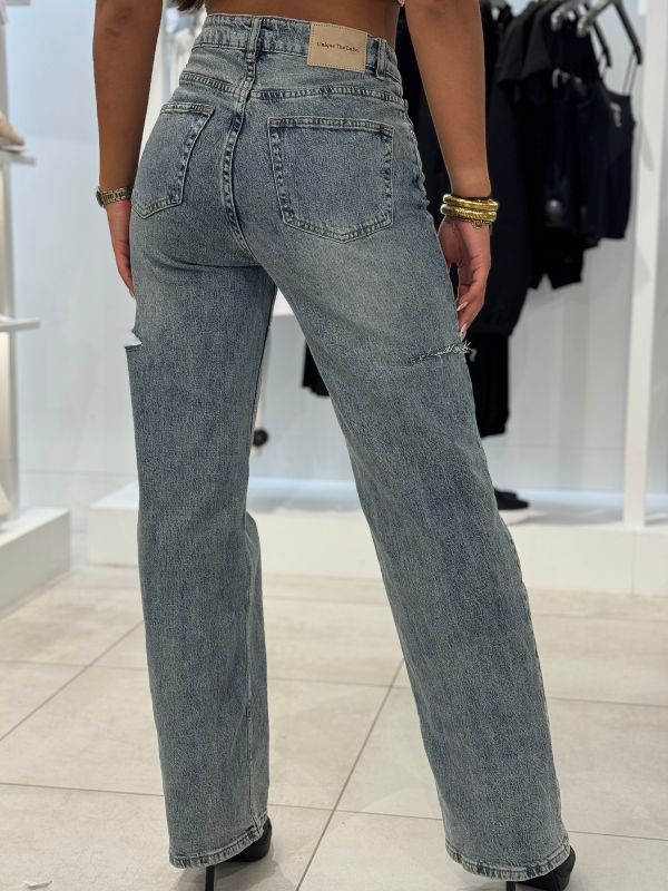 Deze trending wide leg jeans van Unique the Label is een echte eyecatcher. De jeans heeft een high waisted pasvorm en is voorzien van zowel voor- als achterzakken. Opvallende cut-out details geven de broek een edgy twist. De look wordt compleet gemaakt met het subtiele Unique the Label logo. Perfect om te combineren met een strakke top of oversized hoodie voor een fashionable streetstyle look!